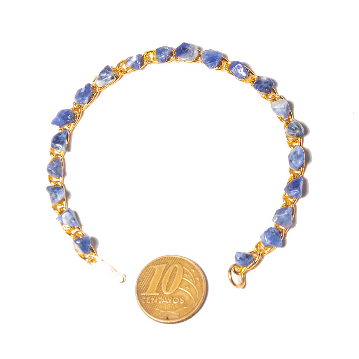 Observação Importante: Esta pulseira foi projetada para ser uma opção econômica e acessível. A pedra de sodalita está colada na corrente e, com o tempo, pode soltar-se. Recomendamos que leia atentamente e entenda esta característica antes da compra.