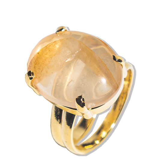 Pacote Atacado 05 Anel Cabochão Oval Hematoide Amarelo Pequeno Dourado Aro Ajustável, Anel de Pedra Hematoide Amarelo de Garimpo Lapidado em formato Cabochão Oval Liso Lapidação Manual aro ajustavel ao dedo serve do 14 ao 25