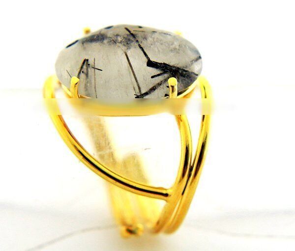 Pacote Atacado 05 Anel Cristal com Turmalina Preta Incrustada Cabochão Oval Tamanho Pequeno Pedra com Lapidação Manual tipo artesanal com excelente brilho e com um design moderno Montado com aro ajustavel ao dedo reforçado banhado em Flash dourado, Lindo brilho serve do 10 ao 30