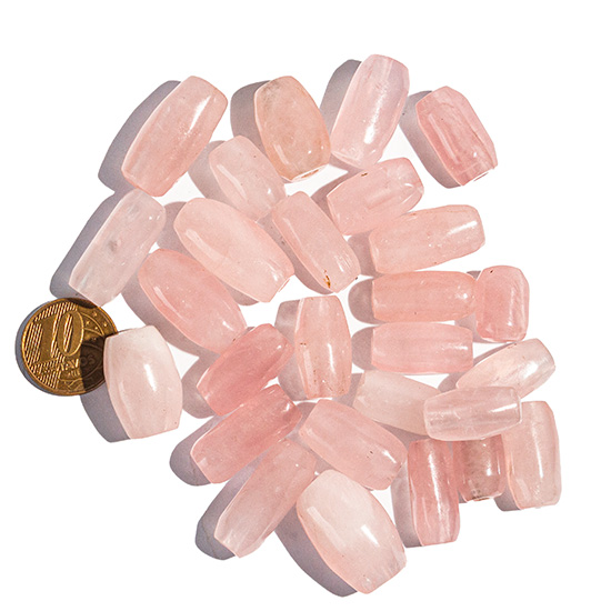 Pedra Quartzo Rosa Barril Furado Longitudinal 20 a 25 mm Tipo B - Para Montagem de Artesanato