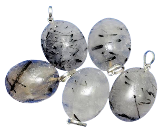 Pingente Cabochão Oval pedra Cristal incrustado Turmalina Preta castoação Prata 950 ( PRATA DE LEI)