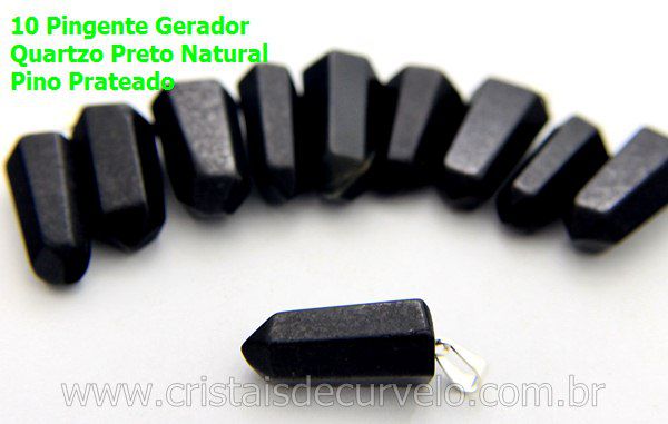 10 Pingente Masculino Pontinha Quartzo Preto Presilha e Pino Prateado ATACADO