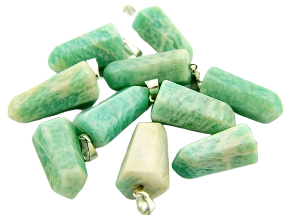 Pingente PONTA de Amazonita pedra de garimpo com lapidação artesanal montado no dourado , ideal para colar e pulseiras, ja vai montado.