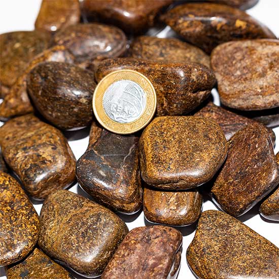 Os cascalhos de Bronzita rolada são pedras naturais autênticas de garimpo, perfeitas para uso em práticas esotéricas, como a confecção de orgonites, mandalas e outros artesanatos. Com uma forte cor bronze e um brilho metálico único, essas pedras ajudam a promover paz interior, estabilidade e são ideais para quem busca equilíbrio emocional e clareza mental.