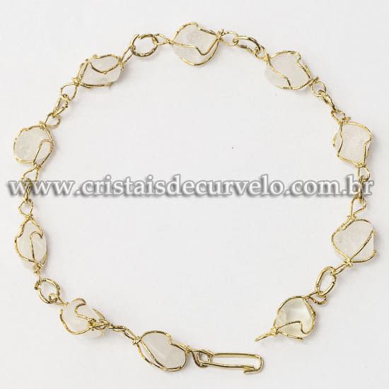 05 Pulseira Pedra Quartzo Leitoso Na Gaiola Dourada ATACADO Pulseira Feita com a pedra dentro da gaiola com arame no fio dourado mineral natural de garimpo com lapidação rolada, pedra Peça bem Delicada e com uma Levesa Maravilhosa