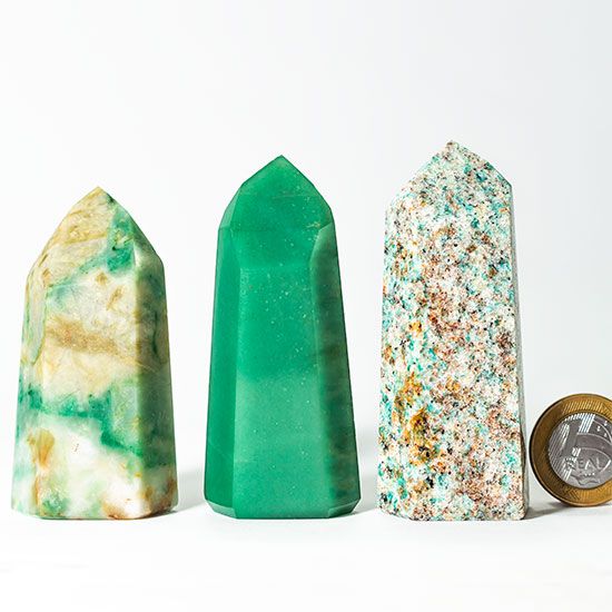 Kit 03 Ponta Natural Pedras Verdes Gerador Lapidação Sextavado