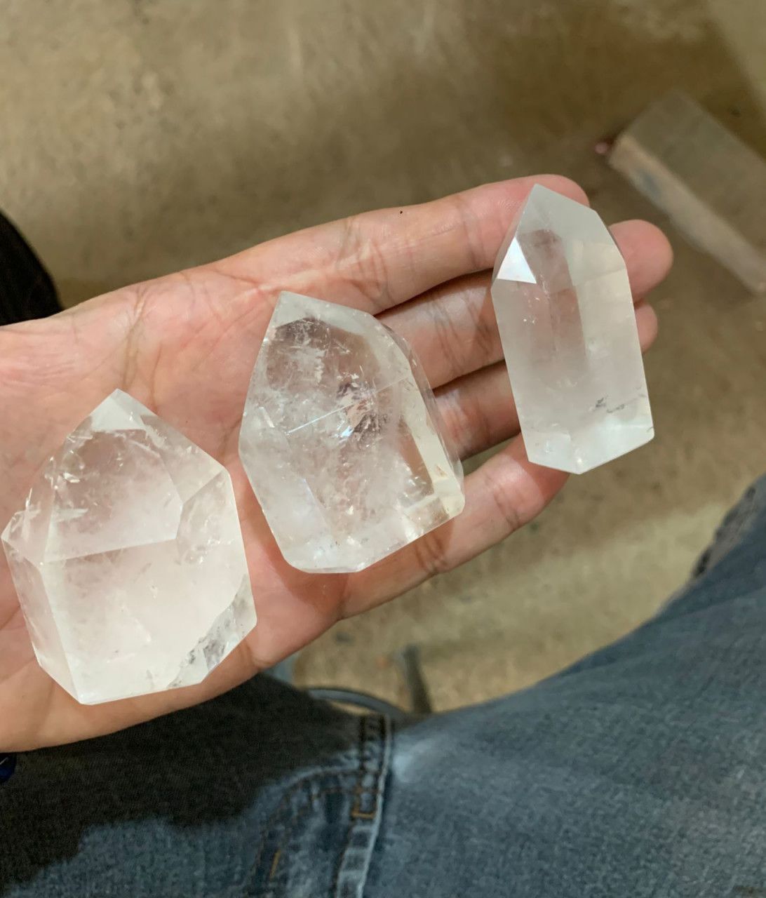 Lote 08 Pontas Cristal de quartzo lapidado gerador ou ponta de cristal lapidado pedras naturais Pacote com 8 pedras preço no atacado para revenda, lapidação sextavado conforme sai do garimpo Pedras Lapidadas